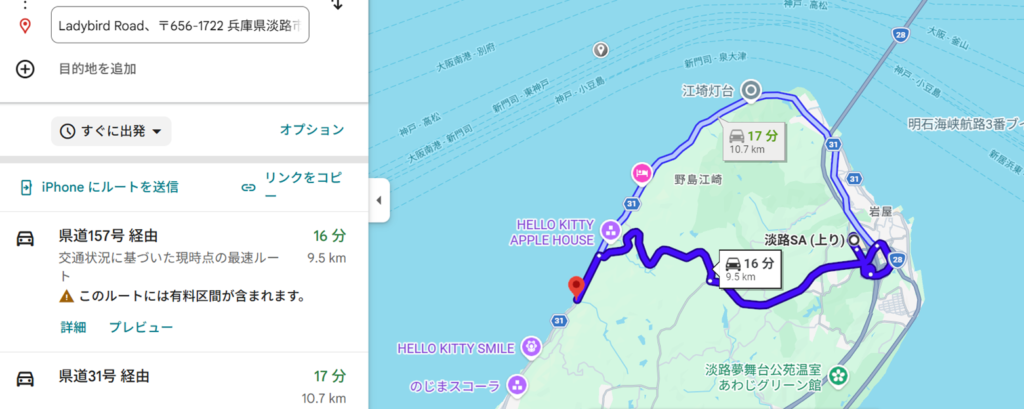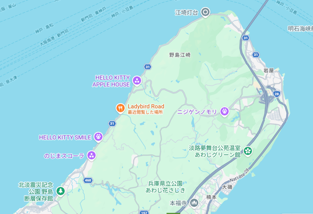 淡路島北部の西海岸沿いにある「Ladybird Road(レディーバードロード)」への行き方についてご案内します。